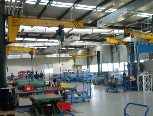 立柱式旋臂吊在旋轉(zhuǎn)范圍內(nèi)產(chǎn)生扇形工作面內(nèi),可有效的進(jìn)行工件的吊卸工作。室內(nèi)室外多種應(yīng)用場合均可使用,即使在凈空高度很小的室內(nèi)同樣能提供大的提升高度。立柱可用化學(xué)膨脹螺栓直接安裝,也可以使用混凝土預(yù)埋地腳螺栓安裝